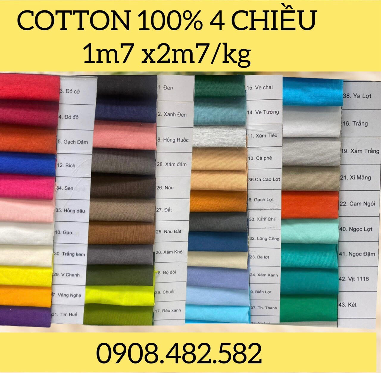 BẢNG 5: COTTON 100% 4 CHIỀU