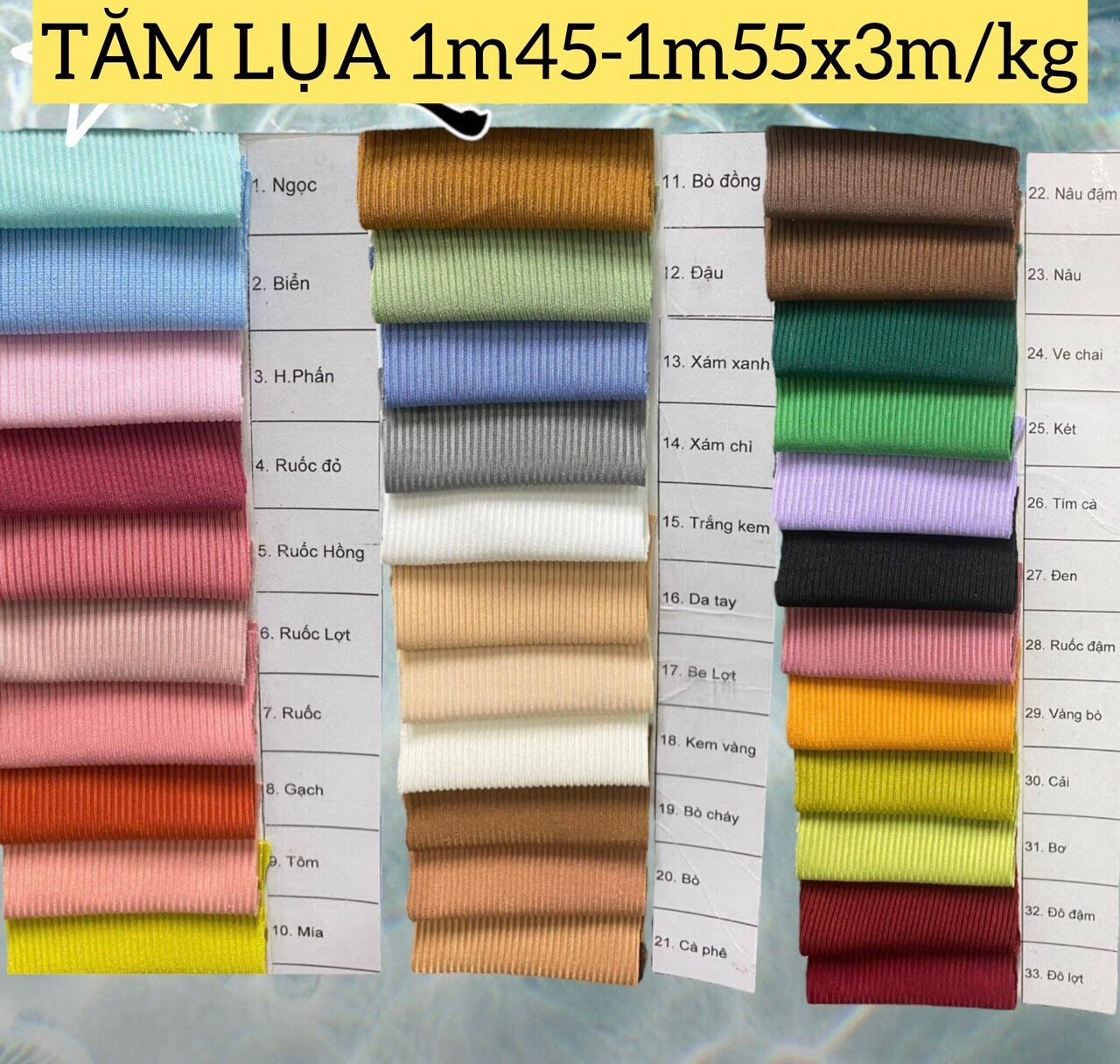 BẢNG 1: VẢI CÁ SẤU 65/ 2 CHIỀU
